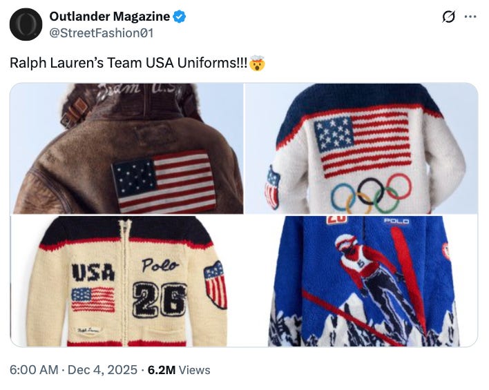 Ralph Lauren making up for the prior Team USA uniforms with some absolute heat.