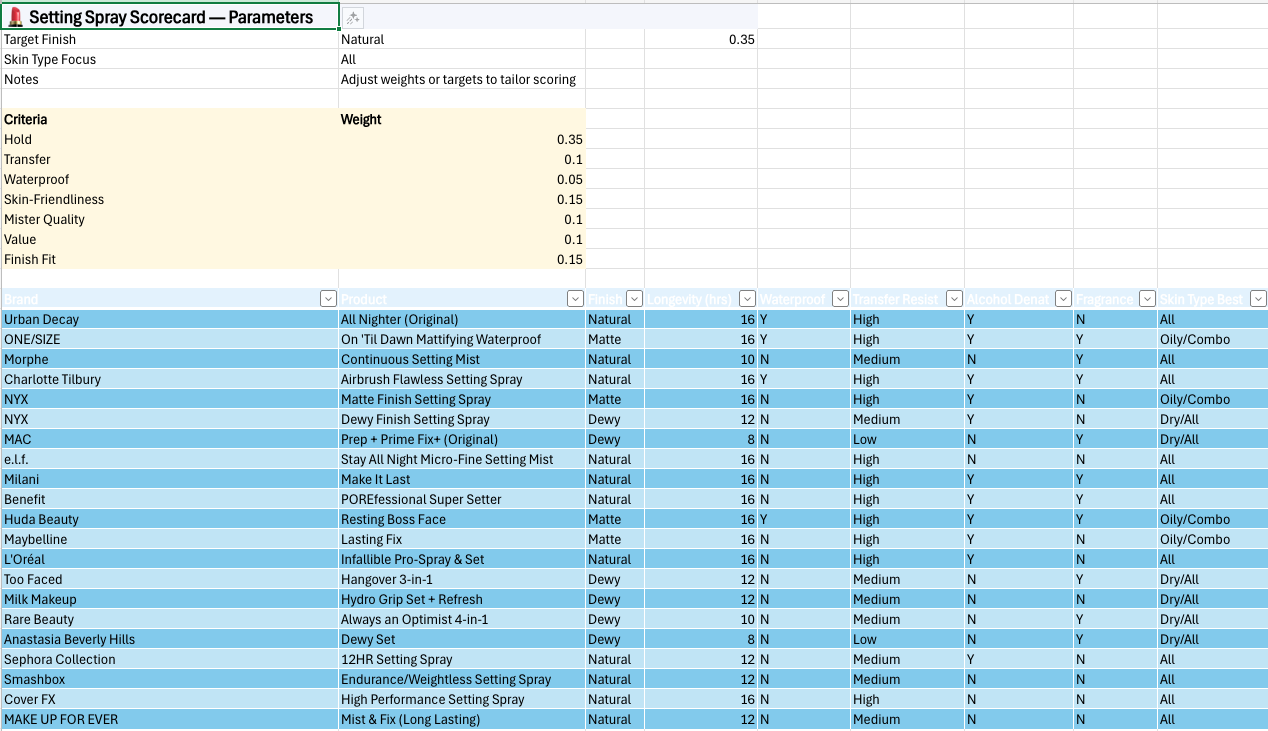 This is an example of what that generates (with far more columns) and you can adjust the weight of criteria to make a system that works for your comparison. It’s pretty wild how useful the data it pulls is.
