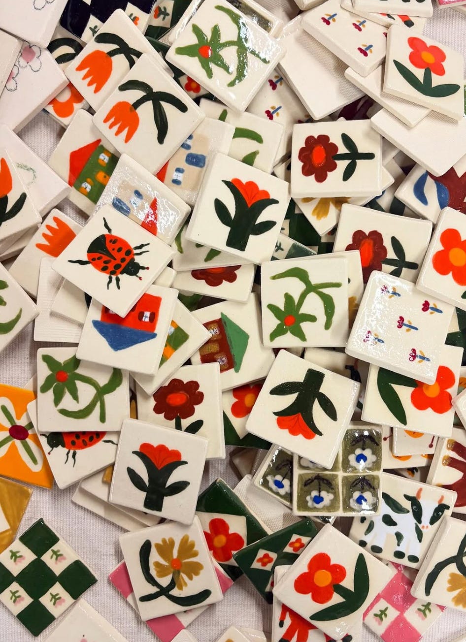 Embroidered tableware. Egg carton mezze platters. Dutchcore tilework.