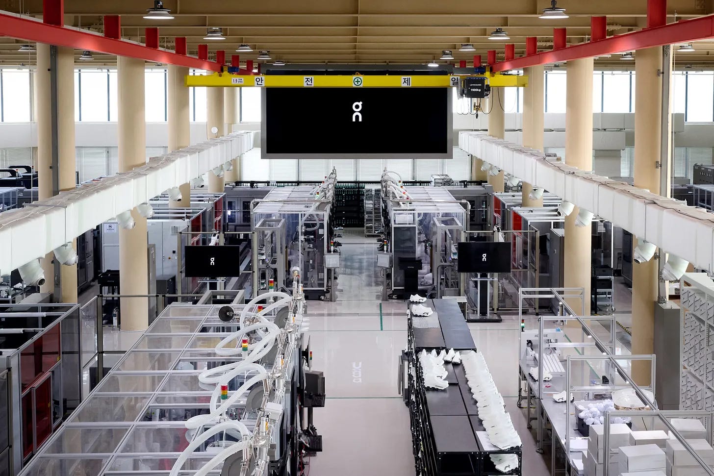 On just hosted a giant press trip for the launch of their newly opened factory in South Korea, where 32 fully automated robots are producing their newest products in a fraction of the time it would take humans to do it.