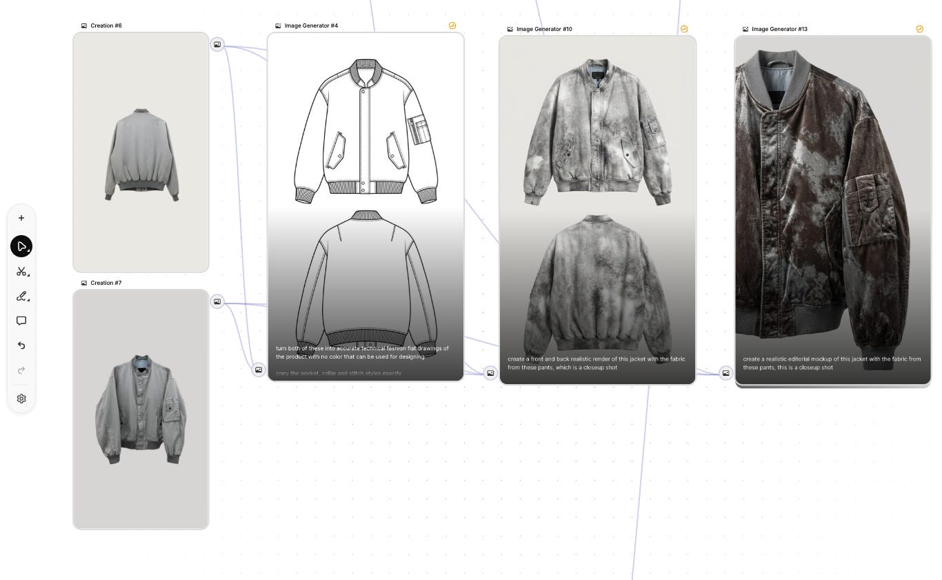 Then load in references, which you connect with nodes and execute an image generation, video generation, alteration, which you can select settings for, rerun at will, and then run groups of items through using their “lists” function.