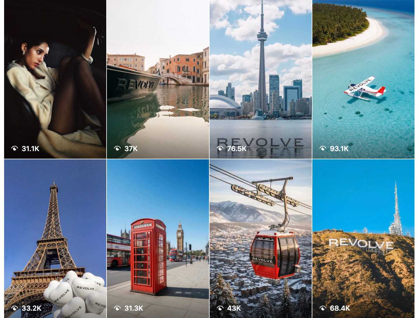 Revolve launched a multi-post AI campaign of their logo projected onto places. You could watch them deleting comments on some of the more obvious, but per usual its just a wall of fan emojis.