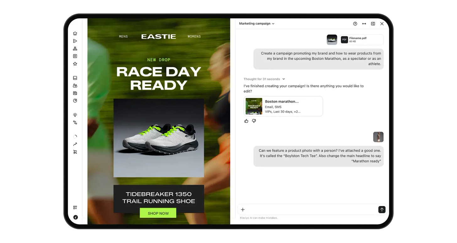 One standout - I am there with Klaviyo for their release of Composer, a very useful tool for email marketers that will generate full email And SMS campaigns using your brand kit, website and assets, completely ready to go in Klaviyo, with segments and campaign setup.